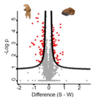 Figure 3. Quantitative proteomic analysis of hibernating and active brown bears. Blue marking for significant proteins with a p-value <0.01.